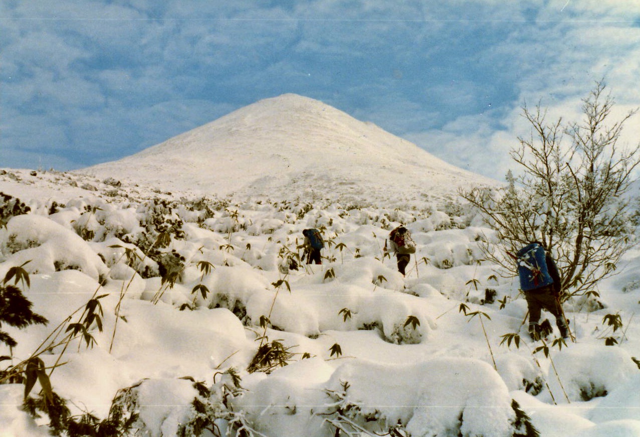 1978年12月 小積雪の中、美瑛富士を目指す 右端に長谷